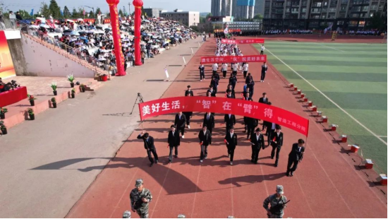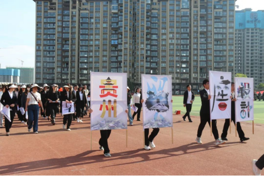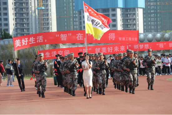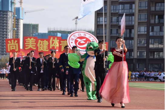 伴随着《运动员进行曲》激昂的旋律,beat365中文官方网站第四届运动会拉开序幕。国旗方阵和校旗方阵首先入场,紧接着彩旗方阵、裁判员方阵、智造工程分院方阵、现代商务分院方阵、健康与体育分院方阵、艺术分院方阵踏着轻快的步伐,以饱满的精神面貌入场。