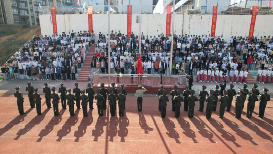 全体人员入场后,举行升旗仪式,全体师生行注目礼(预征班敬军礼),奏唱国歌。