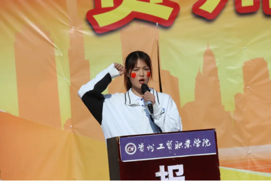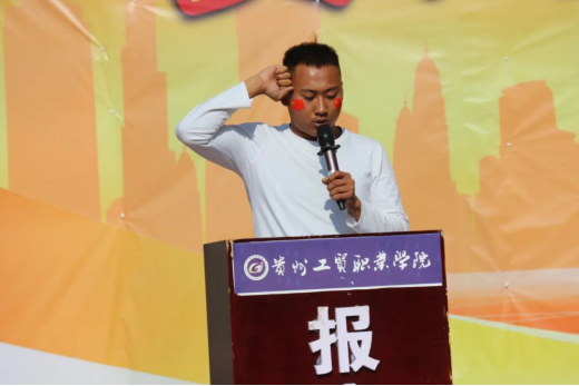 来自健康与体育分院的运动员彭南航同学代表运动健儿们发言:“我们将以积极、饱满、热情的态度参加本届校园运动会,弘扬奥林匹克精神,更快、更高、更强。在比赛中,一切听从指挥,遵守纪律,遵守规则;尊重裁判,尊重同学,团结协作;既勇于拼搏,又注意安全;友谊第一,比赛第二;赛出风格,赛出水平。”