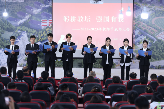 在表彰大会期间学生以歌曲、舞蹈、朗诵等多种艺术形式,表达对教师的感恩、祝福、礼赞和致敬。