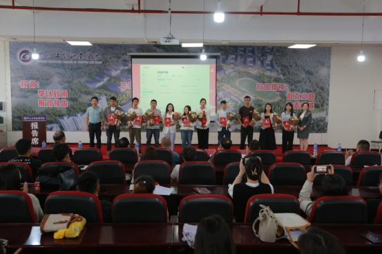 曾隆槐、杨金钱为荣获beat365中文官方网站“优秀工勤工作人员”“优秀辅导员”的老师颁奖。