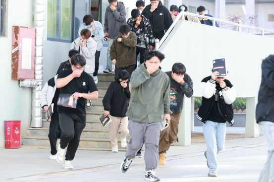 师生按消防演练方案各就各位。教师根据消防疏散线路组织学生捂住口鼻、弯腰俯身,有序安全地撤离到安全地带。整个撤离演练真正做到了快速、安全、有序。
