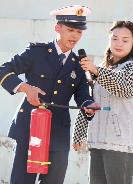 生态医药与康养学院师生演示和讲解急救方法,围绕心肺复苏急救的相关知识、基本急救规范与急救技能,为师生进行了系统的讲解,增强了师生对应急救护的认识。威宁县消防大队消防员现场演示并教授了灭火器的正确使用方法和操作要领,指出在使用的时候要遵循“一提、二拔、三压、四射”的原则,并且集中喷射火焰根部,以达到灭火的效果。