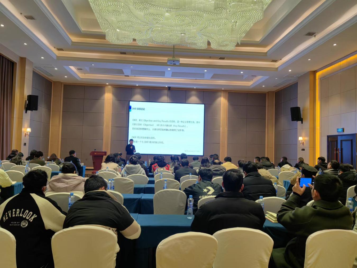 下午,代表团全体成员听取了贵工贸常务副校长黄冠迪题为“自驱动的制度保障——OKR管理理念与实践”的专题讲座。黄冠迪常务从传统管理工作(KPI体系)、OKR体系总论、周会制度、绩效管理等方面分享了KPI体系的缺点以及OKR优势,并指出下一步贵工贸信息化管理的方向。