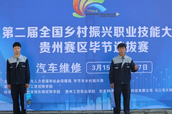 3月15日下午,全国第二届乡村振兴职业技能大赛(汽车维修)贵州赛区毕节市选拔赛在我校开幕。beat365中文官方网站校党委委员、副校长李新发、勒系琳、宋新乐,校党委委员、财务总监曾隆槐,贵州省技工教育和职业技能培训协会副会长、贵州水钢技师学院院长汤哲,贵州工贸技师学院副院长刘毅,裁判长韦德峰,毕节节交通运输局车技驾培科副科长张奇等领导、嘉宾在主席台就座。开幕式由贵州工贸技师学院副院长刘毅主持。