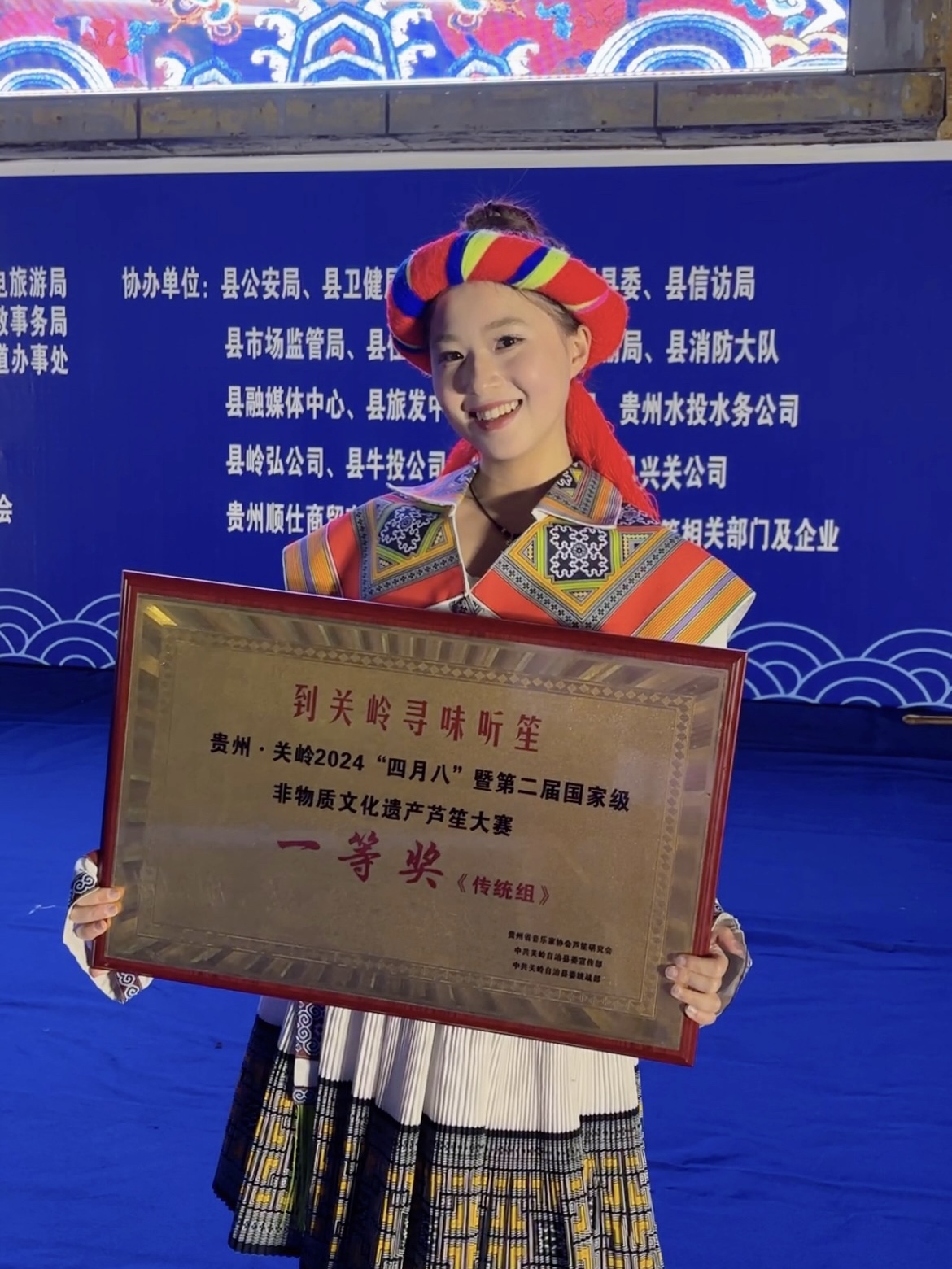 5月16日,在贵州·关岭2024“四月八”暨第二届国家非物质文化遗产芦笙大赛中,beat365中文官方网站艺术学院“辰海艺术团芦笙队”,不畏强手,凭借精湛的技艺和出色的表现,荣获传统组一等奖!