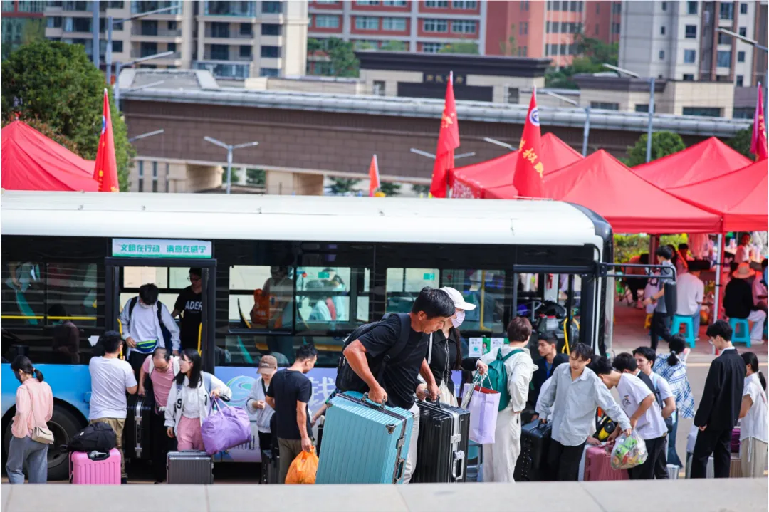 从火车站、客车站到校园内,学校为新生提供全方位的迎新服务。学校在贵阳北站、毕节高铁站、六盘水站、贵阳龙洞堡国际机场、草海火车站、威宁凤山客运站等多地设置了入校引导站,确保新生能够报到。