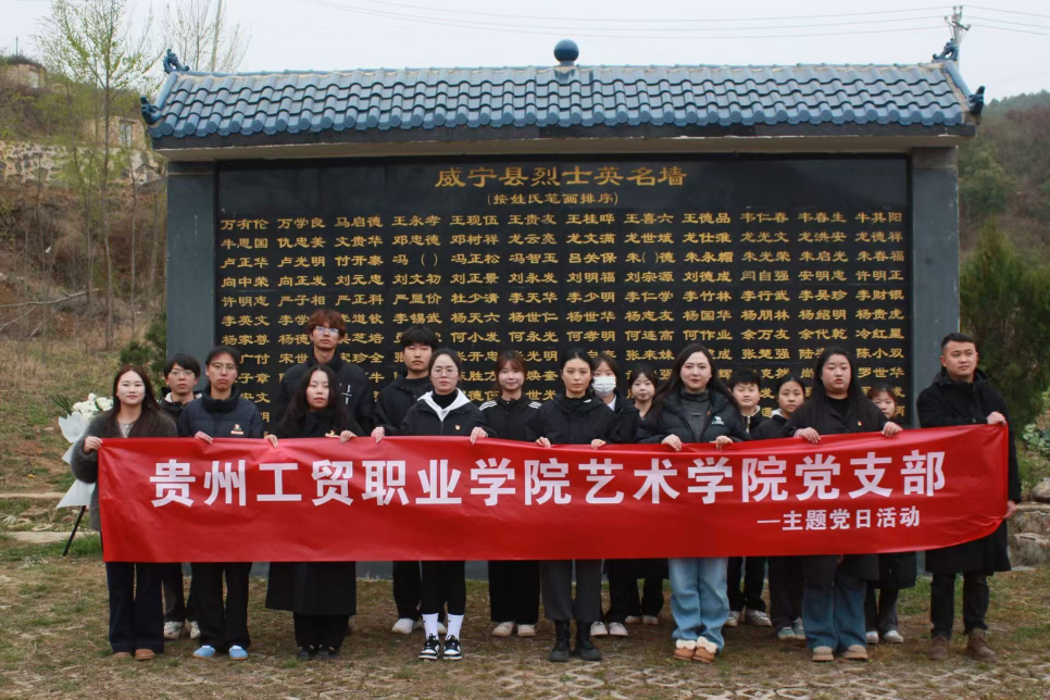 4 月 2 日,艺术学院党支部组织学院党员、教师代表、团员代表、学生代表前往威宁自治县沙河边烈士陵园,开展 “赓续红色血脉 激扬奋进力量” 的主题党日活动。此次活动旨在缅怀革命先烈,汲取奋进力量,强化党员的责任担当。