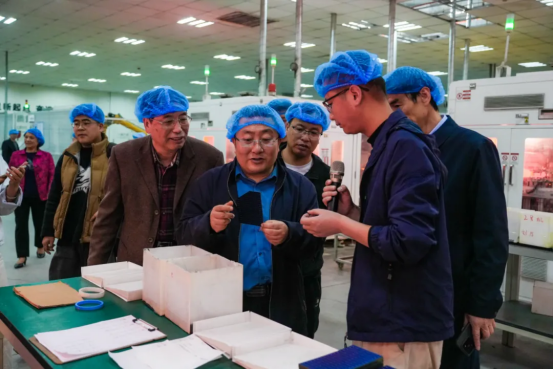 张剑一行与学校领导共同前往贵州一道长通新能源有限公司参观交流,在参观过程中,贵州一道长通新能源有限公司副总经理郑乾详细介绍企业的发展历史、企业规模和发展成果等,而后深入生产线进行实地参观,郑乾还介绍了生产线上的关键技术和工艺。