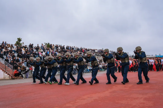 各二级学院献上精彩节目:现代商务学院(乡村振兴产业学院)的啦啦操活力四射,艺术学院的“笙歌彝韵”传递民族文化魅力,生态医药与康养学院的“生命之舞”演绎健康之美,智造工程学院(新能源产业学院)的“哈尼草原共舞”展现青春飞扬,国防教育与体育学院的“武动旗心”则以刚健舞姿震撼全场,将现场气氛推向高潮。