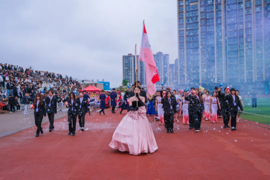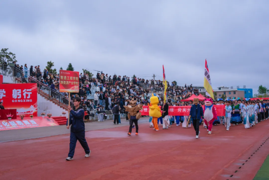 开幕式在激昂的方阵入场式中拉开序幕。国旗方阵与校旗方阵率先入场,庄严肃穆;彩旗方阵以斑斓色彩点燃全场;裁判员方阵步履铿锵,彰显公正精神。各二级学院方阵紧随其后,自信从容入场,诠释着团结奋进、积极向上的精神,将蓬勃朝气与昂扬斗志洒满整个运动场。