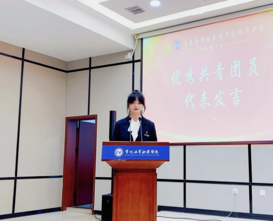 优秀共青团员代表蔡焱同学和优秀共青团干部代表熊良萱同学先后上台发言。蔡焱分享自己在学习与实践中的成长经历,鼓励同学们树立远大理想,脚踏实地追逐梦想;熊良萱则结合自身团干部工作经验,号召大家积极参与团组织活动,在服务同学中提升自我。她们的发言情真意切,展现出新时代青年的责任与担当,引发了在场同学的强烈。