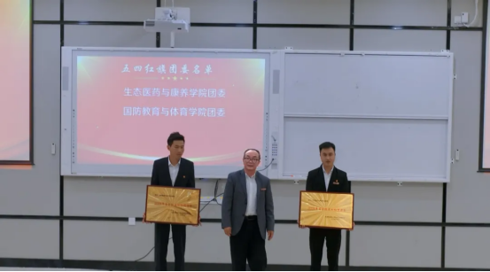 校党委委员、副校长宋新乐为五四红旗团支部”班级颁发牌匾,鼓励这些集体继续发挥模范带头作用;
