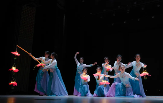 当舞台灯光再次聚焦,演出进入最动人的终章——《绽放·师恩难忘》。这一刻,聚光灯下的主角不再是技巧的展示,而是情感的奔涌与师道的传承。2023级舞蹈表演专业的全体学子与指导老师们走向舞台中央,师生同台,共同演出。这一刻,“绽放”不仅是舞蹈专业学生们技艺的成熟展现,更是师生情谊在舞台上的璀璨升华。