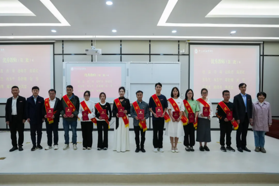 理事长黄冠迪,党委副书记、校长勒系琳,校党委委员、副校长宋新乐,校长助理彭双艳为“优秀教师”颁奖