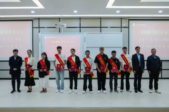 理事长黄冠迪,校党委副书记、校长勒系琳,校党委委员、副校长张正君为“优秀教育工作者”颁奖