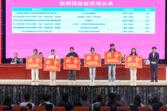 典礼上,学校对2024年在各类学科与技能竞赛中取得优异成绩的师生进行表彰,充分展现了学校“以赛促教、以赛促学、以赛促创”的育人成果。