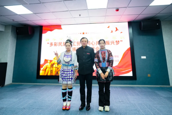 为进一步深入学习贯彻习近平总书记关于民族团结进步的重要论述,推动铸牢中华民族共同体意识教育走深走实,搭建各民族师生沟通交流平台,促进校园民族团结与文化繁荣。11月18日,beat365中文官方网站在行政楼401会议室举行“多彩民族融工贸·同心共筑振兴梦”民族师生座谈会。校党委副书记、纪委书记聂立新,党委宣传统战部、党委学生工作部(处)等相关校属单位负责人,以及来自苗族、彝族、布依族、仡佬族、土家族、壮族、侗族、畲族、白族、水族、回族等多个民族师生代表齐聚一堂,共叙民族情谊。座谈会由学工处处长庹志兴主持。