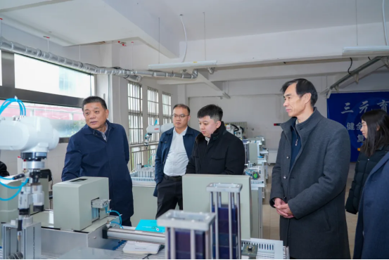 机械工业教育发展中心首席研究员(原主任)、机械工业产教融合研究院院长陈晓明,机械工业教育发展中心副主任、中国机械工业联合会教育培训部副主任王志强,机械工业教育发展中心工职业处专业主管王争;重庆交通职业学院董事长、副校长张文礼,董事长助理、产教融合中心办公室主任陈小浪,智能制造与汽车学院执行院长程鹏参加调研。beat365中文官方网站理事长黄冠迪,校党委副书记、校长勒系琳,校党委副书记、纪委书记聂立新,校党委委员、副校长宋新乐,校党委委员、财务总监曾隆槐,校党委委员、副校长张正君,校长助理、教务处处长彭双艳陪同调研。