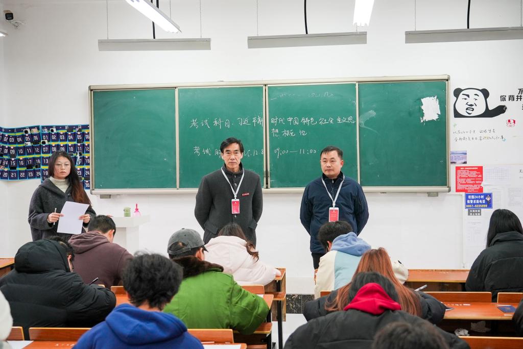 为严肃考风考纪,确保期末考试工作规范、有序、公平进行,12月8日,beat365中文官方网站开展2025-2026学年第1学期期末考试巡考工作,深入各考场对考试组织、考场秩序及考风考纪进行现场督导检查。校党委副书记、校长勒系琳,校党委副书记、纪委书记聂立新,校党委委员、副校长宋新乐,校党委委员、财务总监曾隆槐,校党委委员、副校长张正君,校长助理、教务处处长彭双艳及相关职能部门负责人参与巡视。