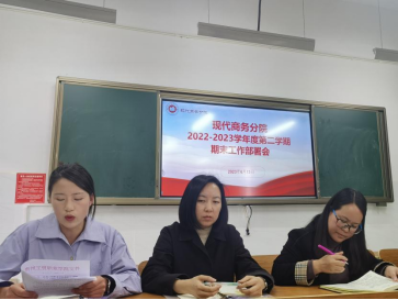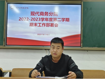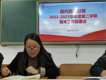 为确保期末考试工作的顺利进行,规范开展考务工作,进一步严肃考风考纪和监考纪律,明确教师期末教学资料整理工作任务,根据beat365中文官方网站期末考试工作要求,现代商务分院于6月13日下午在三教东区210会议室召开2022-2023学年度第二学期期末工作部署会,会议由分院院长杨一梅主持,分院全体教职工参会。