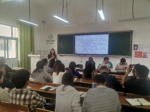 随后,孔蝶对分院本学期的工作进行了整体的梳理总结,她围绕本学期分院师生比赛获奖情况、分院活动开展情况、分院重点创新工作等方面展开,以具体的数据和图片呈现,通过梳理总结指出分院工作推进中的问题,并提出下一步改进措施。
