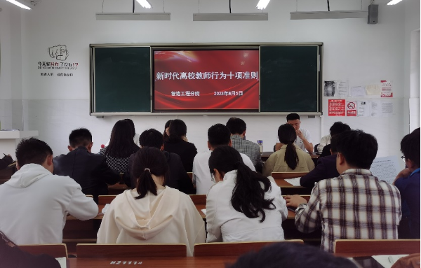 孔蝶带领全体教师学习了《新时代高校教师职业行为十项准则》,她首先从高校教师的光荣使命出发,详细讲解高校教师学习《十项准则》的重要意义,接着她依次宣读了十项准则,并要求大家要认真领会准则精神,进一步增强教师的责任感、使命感,做有道德、有底线的好老师。