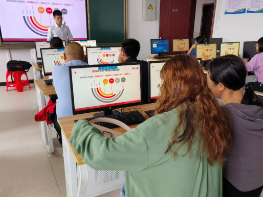 培训师向参训教师演示教学平台教师端的登录与使用方法,同时,参训教师还分别以指定虚拟账户身份体验了学生端的教学中心和训练中心等,了解财会工作领域的相关任务要求及业务流程,期间,参训教师积极参与互动交流,就一些软件操作的细节提出问题,培训师针对教师的问题进行了认真解说和指导。