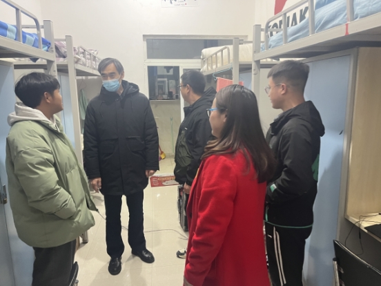 晚修结束后,勒系琳副校长又带领乡村振兴产业学院(现代商务学院)常务副院长杨一梅、学工科科长吴国凡、团总支书记袁优及学院全体辅导员走访学生宿舍,慰问学生,并排查寝室安全。在学生宿舍,勒系琳副校长与同学们交流。询问同学们的假期学习与生活、新学期的安排与打算、未来的发展规划等,耐心倾听同学们的心声与诉求,叮嘱同学们关注天气变化、注意保暖,加强锻炼,保持身心健康,练就过硬本领,努力成长为勇担重任的时代新人。