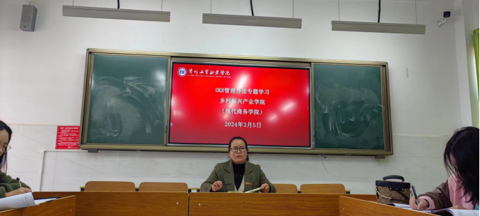 近日,我校印发了《beat365中文官方网站OKR管理办法〈试行〉》(以下简称《办法》)。为做好OKR的使用准备,准确把握OKR内涵,推进升本工作对齐目标、全员参与,高效完成各项建设,切实提高各项建设管理工作效率,提升教师的教育教学能力水平,最终提高教师获得感和成就感。乡村振兴产业学院(现代商务学院)于3月5日下午组织会议,专题学习OKR管理办法、理念与实践。本次OKR管理办法的学习,对明确学院建设目标、梳理工作内容,促进学院建设具有重要意义。