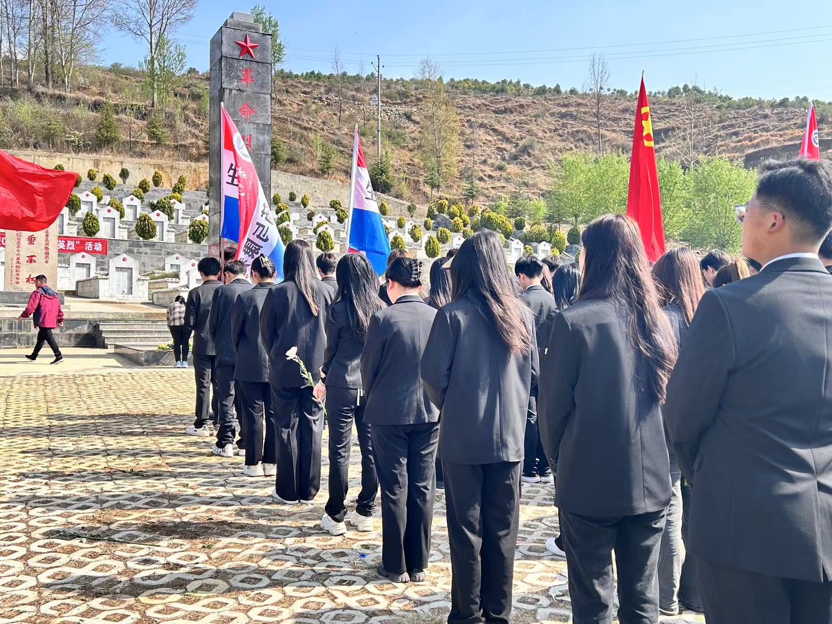 在活动过程中,所有人共同重温入党誓词、入团誓词,再次坚定了理想信念,同志们纷纷表示要始终秉持着烈士们的崇高精神,为祖国的繁荣富强贡献自己的力量。随后,教师和学生代表分别向烈士纪念碑敬献了花束,表达了对烈士们的崇高敬意和无尽缅怀,同学们深深鞠躬表达对烈士无私奉献与无惧生命的精神敬佩。