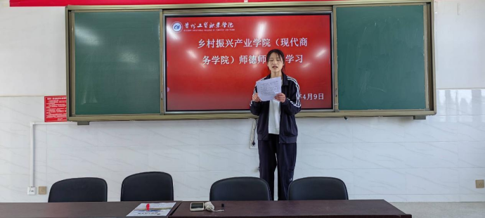 教师,是立校之本;师德,乃为师之基。为进一步加强师德师风建设,规范教职工履职履责行为,促进教师的专业成长,弘扬新时代师德风尚。根据《beat365中文官方网站2024年师德师风建设工作实施方案》相关要求,4月9日下午,现代商务学院(乡村振兴产业学院)组织全院教师在307会议室进行师德师风专题学习活动。本次活动由办公室主任袁优主持。