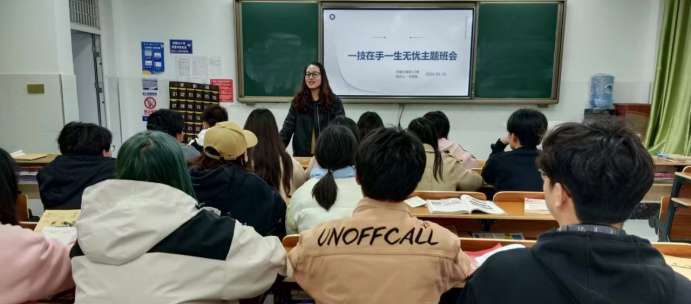 5月16日晚,我院还组织合班开展了“一技在手,一生无忧”主题班会,搭建普及职业教育活动周的相关知识、传达活动周安排的舞台。班会课上,各班级根据专业特色,从职业教育周的由来、精神内涵、弘扬新时代精神、如何培养劳模精神等方面进行了讲述,同时分享职业教育案例,辅导员老师给同学们强调到:作为职业院校的学生,要培养自己的劳模精神,要学好专业知识,强化我们的技能。技能是成就我们美好未来的关键性因素,只有在学校学好技能、苦练技能,培养核心竞争能力,拥有自己的本领,将来才能在社会立足,成就美好未来。