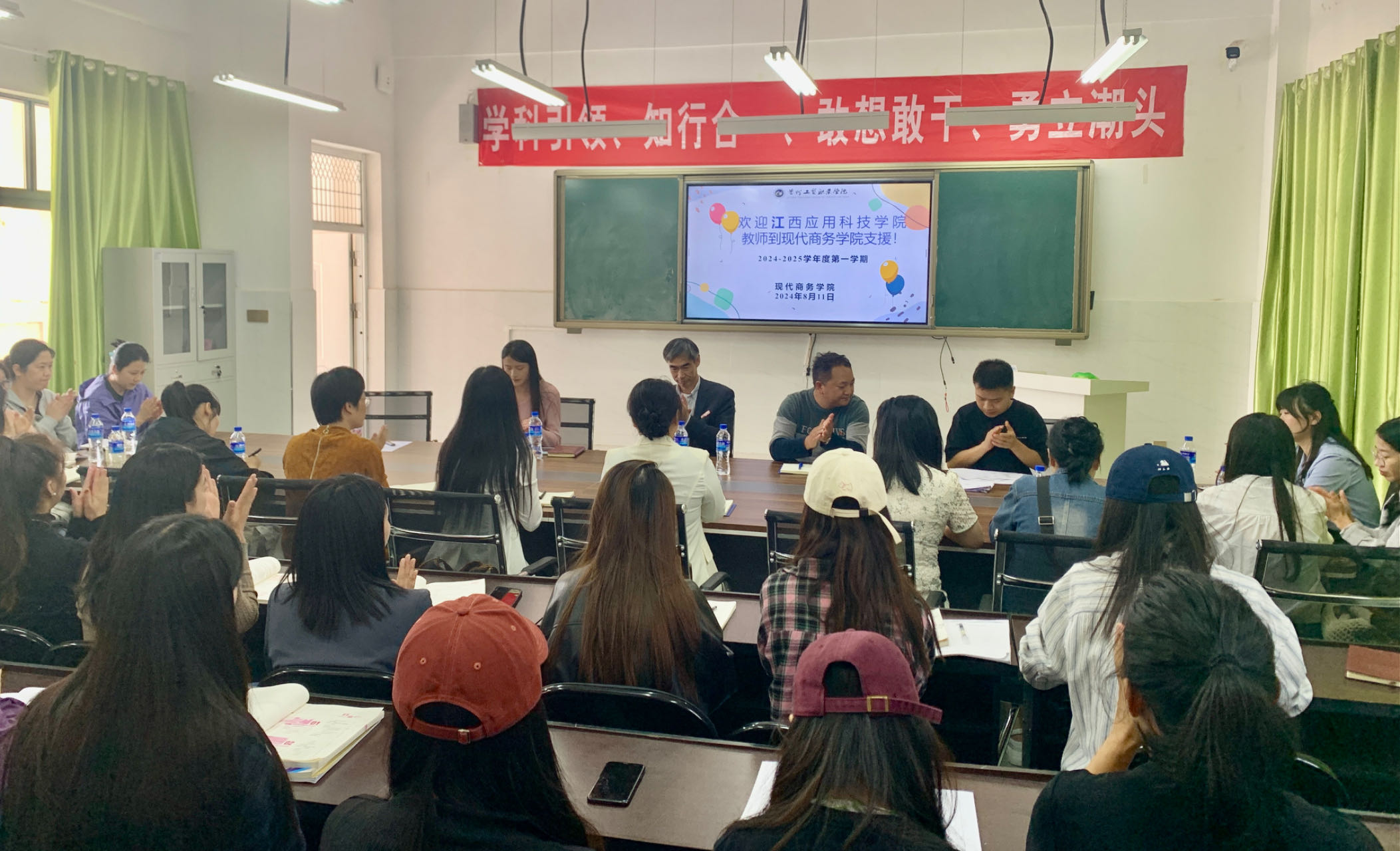 勒系琳阐述本次教学工作的主要任务。他强调,期望江西应用科技学院的教师们充分发挥示范引领作用,全方位助力现代商务学院(乡村振兴产业学院)青年教师的成长,同时深化教研指导,紧跟学术前沿,积极申报并实施各类教学科研项目。我院教师应摆正姿态,调整状态,积极与江西应用科技学院的优秀教师交流学习。