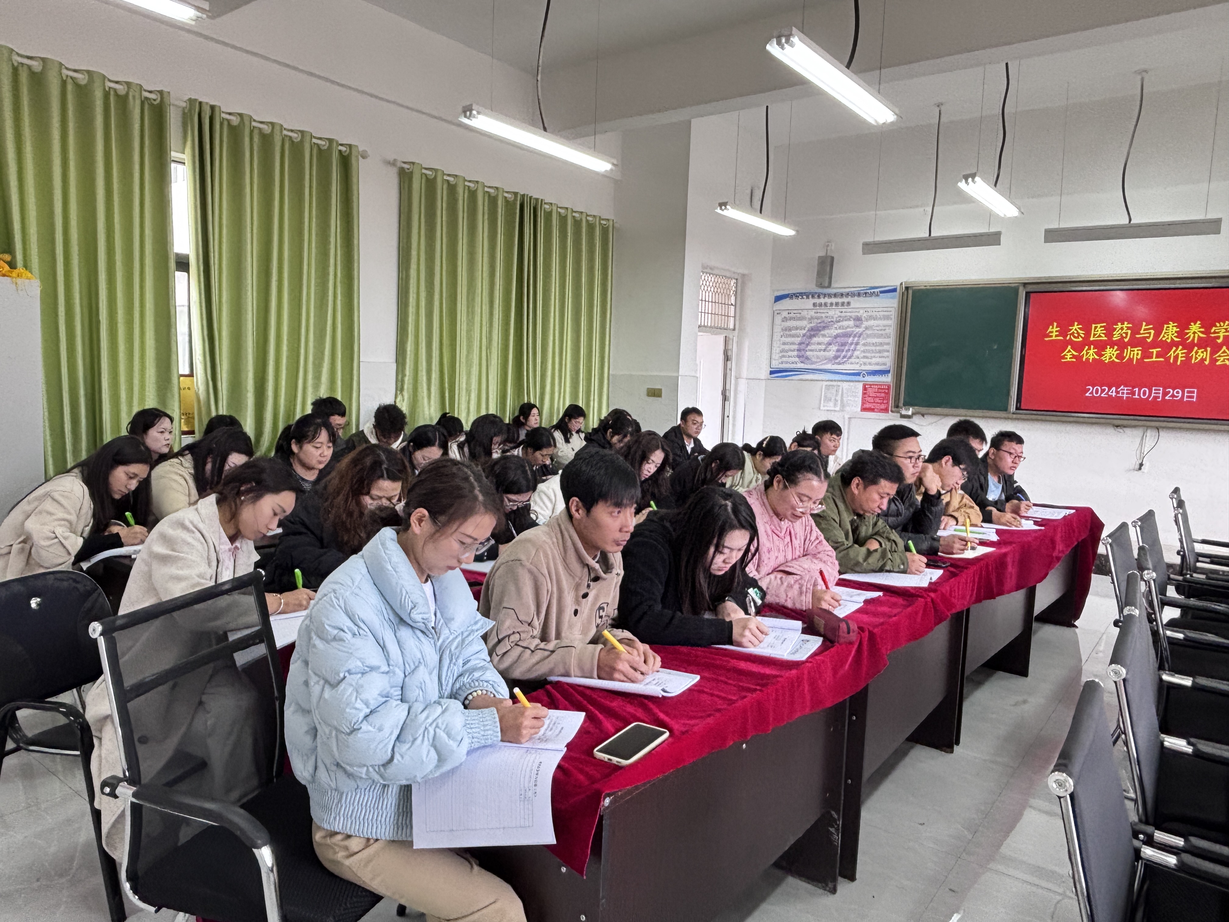 10月29日在学院会议室召开生态医药与康养学院全体教师工作例会,院长阮培均、党支部书记赵英涛、办公室主任王方对、教务科科长蔡国琴、团总支书记兼学工科科长李吉咡及生态医药与康养学院全体教师参会,本次会议由王方对主持。