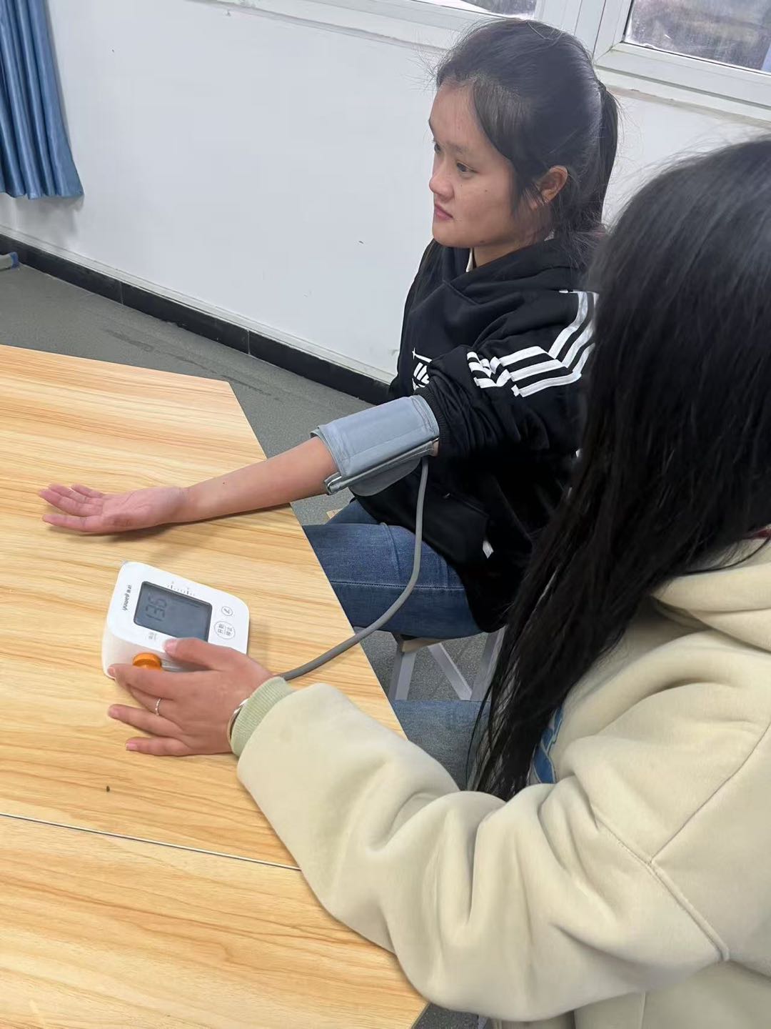 为强化学生实践能力,提升健康服务专业技能,3月25日,生态医药与康养学院康养协会在实训楼五楼护理实训室组织开展"健康守护者"血压测量实操活动。本次活动由具有丰富临床经验的马丽莎老师全程指导,通过"理论精授-仿真演示-实景操练"三位一体教学模式,为学生搭建起"学用贯通"的实践平台。