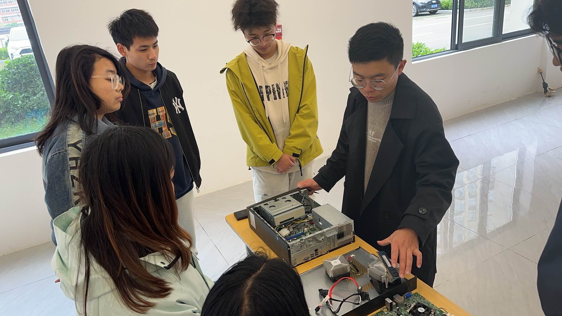 服务期间,志愿者针对同学们电脑问题提供精准支持:处理软件故障时,不仅完成系统重装与病毒清理,还指导同学们进行磁盘清理,讲解操作要点;遇到硬件问题,则开展键盘修复、散热清灰等基础维修。知识普及环节,闵鑫老师结合实例讲解电脑硬件、数据安全与日常维护知识,同学们踊跃互动,现场氛围积极。
