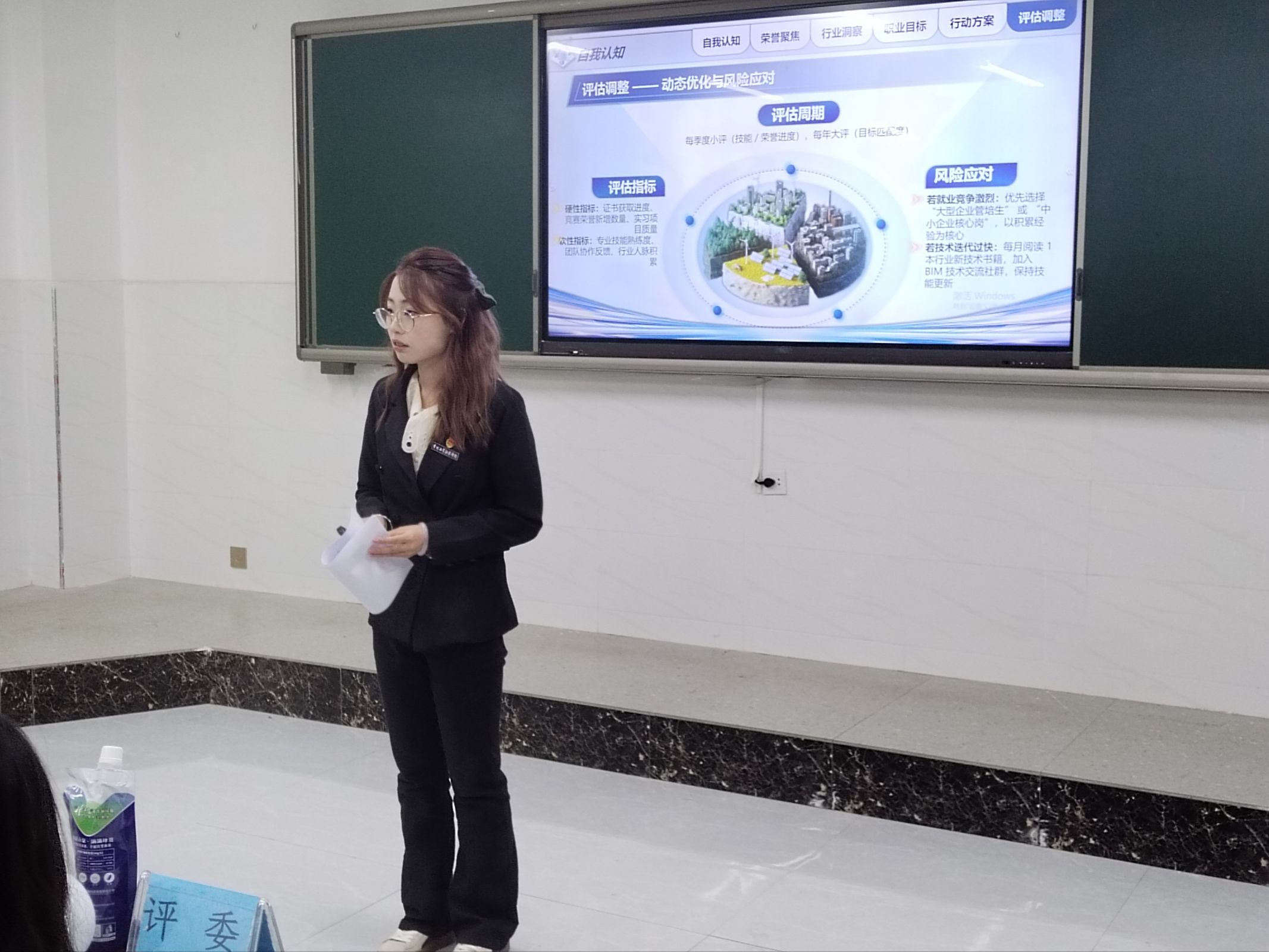 比赛现场,竞赛人员身着正装、精神饱满,他们通过条理清晰的PPT演示与生动讲解,从自我认知、职业目标到行动路径,完整呈现了其职业规划的严谨逻辑与个人亮点,充分展现了扎实的规划能力与对未来发展的坚定信念。