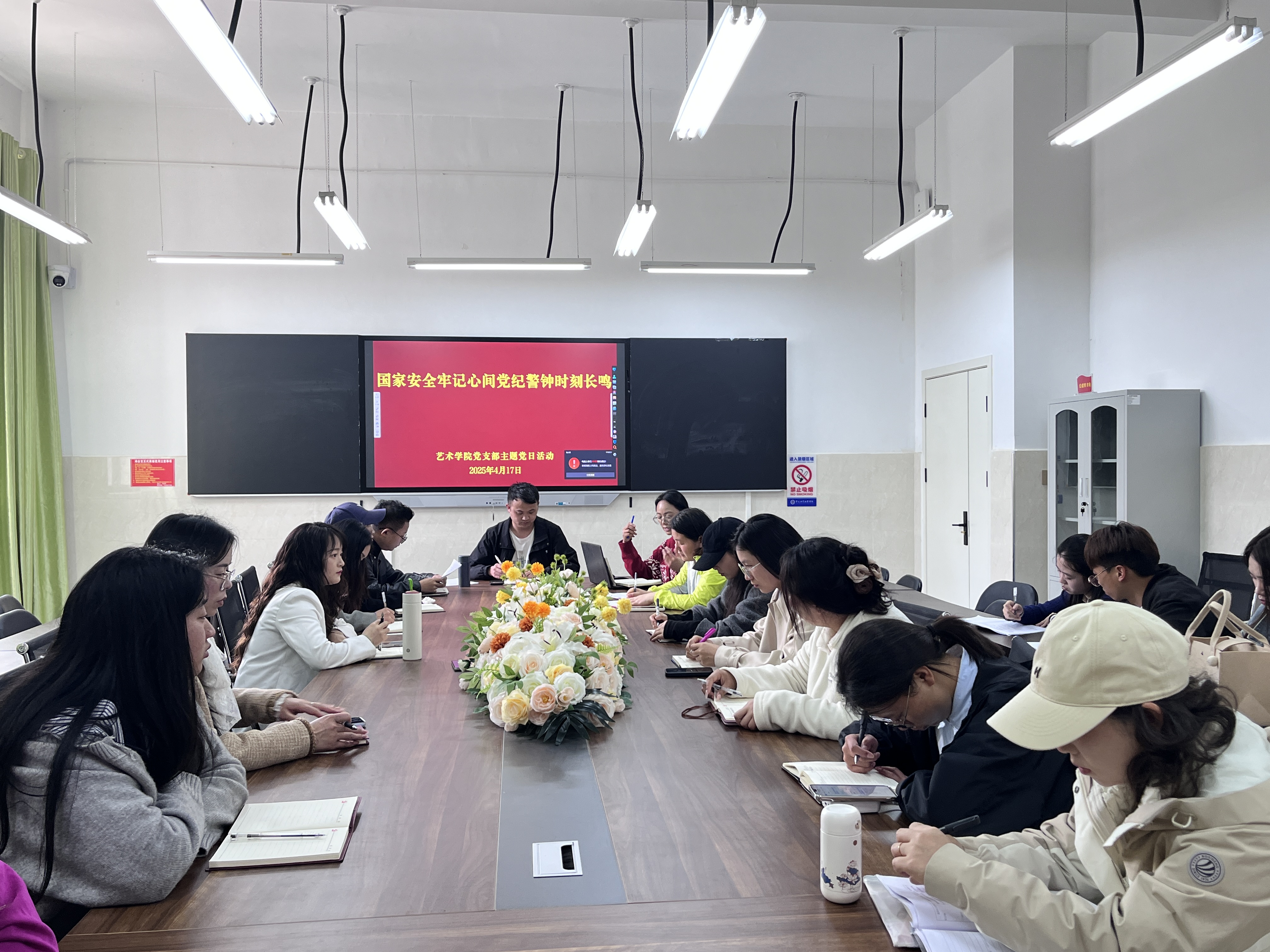 4 月 17 日,艺术学院党支部开展 “国家安全牢记心间 党纪警钟时刻长鸣” 主题党日活动,党支部全体党员、预备党员参加本次主题党日活动。本次主题党日活动目的在于深入学习习近平总书记关于总体国家安全观的重要论述,切实增强党员干部的国家安全意识,推动国家安全教育在学院走深走实。