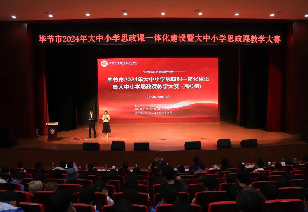 据悉本次比赛自启动以来,得到了全市各高校的积极响应和广泛参与。经过各教学单位的精心组织和初赛选拔,共有来自不同学校的15名优秀教师脱颖而出,进入比赛。决赛于2024年10月18日在毕节工业职业技术学院报告厅举行。参赛教师们围绕思政课的教学目标,结合各自的专业背景和课程特点,深入挖掘课程中的思政元素,精心设计教学方案。他们通过生动的案例、丰富的多媒体手段、灵活多样的教学方法,将思政理论知识与现实生活紧密结合,展现了思政课教学的独特魅力和育人成效。