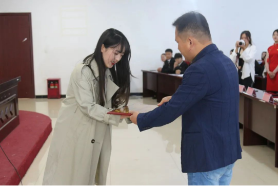 校党委委员、副校长宋新乐向获得“五四红旗团支部”的代表颁发奖牌
