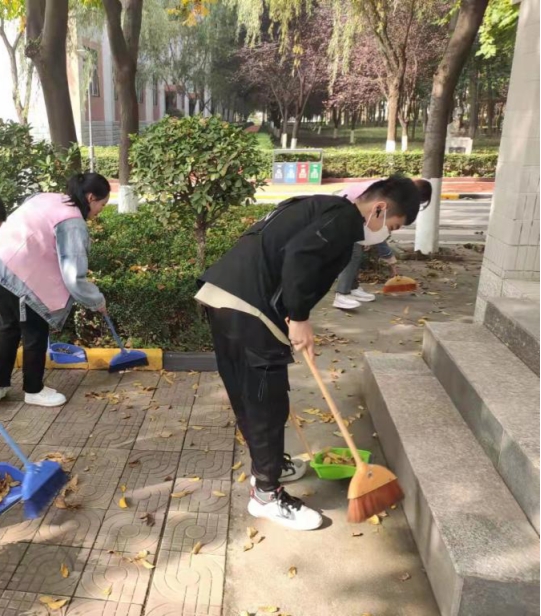 为了提高大学生的劳动教育技能和工作效率,2023年10月28日,生态医药与康养学院23级护理6班,在学校周围人行道上,开展劳动教育活动。
