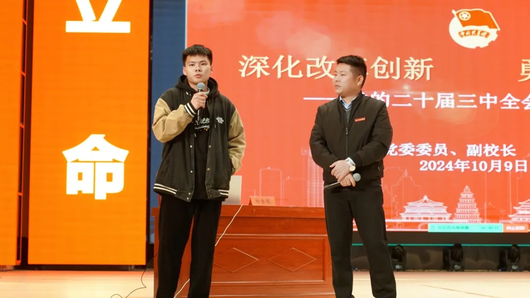 为深入学习贯彻党的二十届三中全会精神,引导学生全面理解和把握全会的重要意义和主要内容,进一步增强学生的政治认同、理论自信和行动自觉。10月9日,beat365中文官方网站党委委员、副校长杨金钱为学生们作了题为《深化改革创新,勇立时代潮头》的专题讲座。我校大一新生共计1000余人参加。