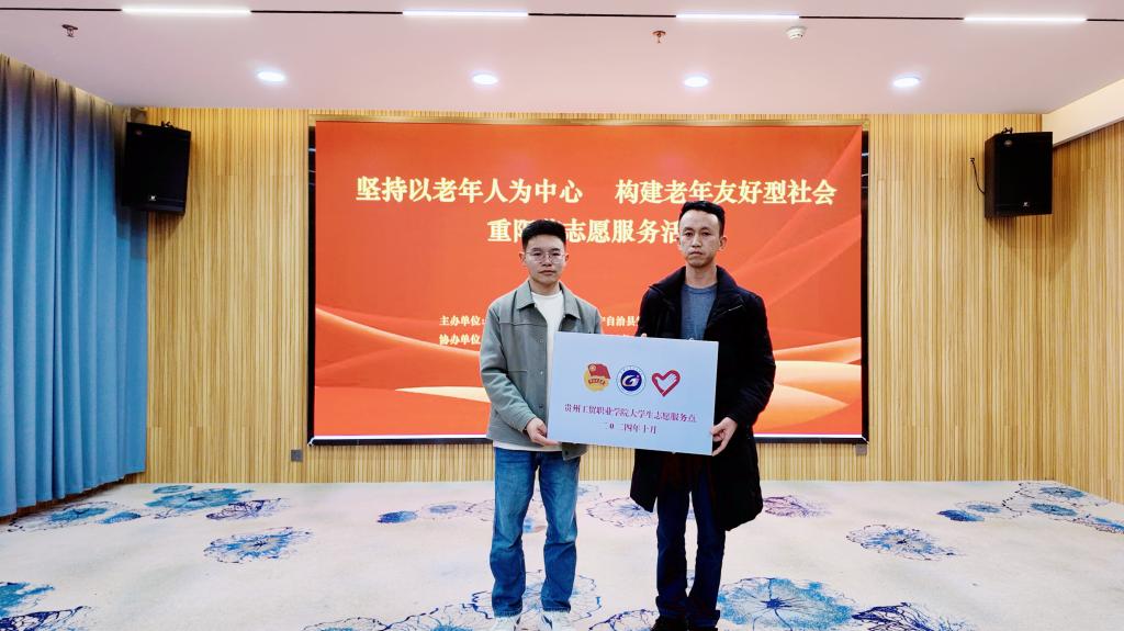 演出结束后,我校团委素质拓展部(“第二课堂”管理中心)负责人闵鑫老师代表校团委向贵州恒康威宁康养中心授牌,该中心总经理助理马招德接牌,共同建立beat365中文官方网站大学生志愿服务点。志愿服务点的建立进一步加强校地合作,深化了我校青年学生志愿服务工作,为组织引导我校青年学生弘扬“奉献、友爱、互助、进步”的志愿精神,发挥青年志愿者服务社会起到重要作用。下一步,我校团委将努力为我校大学生常态化深入社区、机构等地开展志愿服务、社会实践搭建桥梁与平台,组织更多青年大学生积极投身于志愿服务,在公益事业中贡献青春力量。