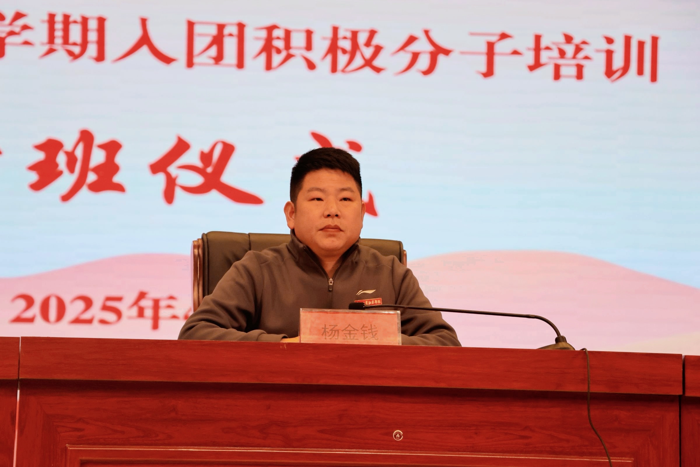 杨金钱在讲话中强调,共青团是广大青年在实践中学习中国特色社会主义和共产主义的学校,团课培训是加强青年思想政治教育的重要途径,同学们要认真学习团的知识,深刻领会共青团的使命与担当,在学习和生活中发挥模范带头作用,以实际行动践行青春誓言,为实现中华民族伟大复兴的中国梦贡献自己的青春力量。