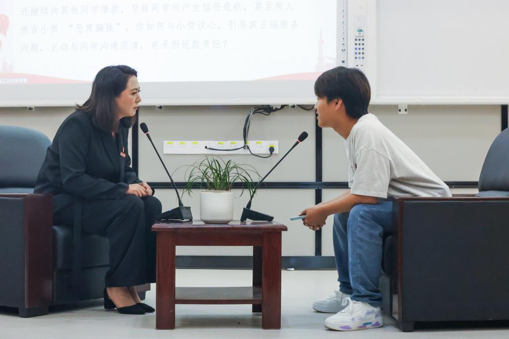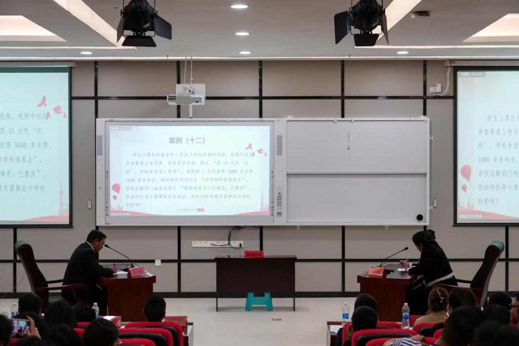 10月17日,谈心谈话情景模拟如期进行。参赛辅导员抽取涵盖学生违纪处理思想引导、家庭经济困难学生心理关怀、学生职业规划指导、实习岗位适配建议等场景,与助演学生开展10分钟模拟谈话。过程中,辅导员们凭借出色的沟通技巧、精准的问题把握能力,既关注学生的思想动态,又聚焦其职业发展需求,有效引导学生化解困惑、明确方向,全面彰显了辅导员“思政育人”与“职业引航”双融合的实践能力。