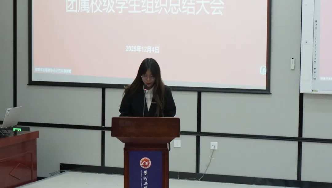 演讲比赛结束后,随即召开了团属校级学生组织2025年秋季学期总结大会。受校团委书记江燕虎的委托,校团委闵鑫老师做总结发言,校学生会、青年志愿者协会、第二课堂管理中心、社团管理中心、青媒体中心主要学生组织负责人依次上台,全面系统地汇报本学期在思想引领、组织建设、校园文化、志愿服务、权益服务、社团管理等方面开展的重点工作、取得的突出成绩、形成的特色亮点,并实事求是地分析了当前工作中存在的不足,提出了下一阶段的工作思路和改进方向。