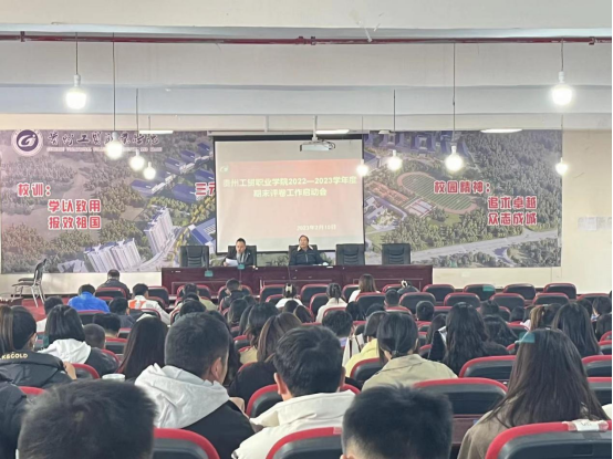 2023年2月10日上午,我校在综合楼二楼报告厅召开2022-2023学年度第一学期期末评卷工作启动会,启动对上学期的期末试卷的评卷工作。会议由教务处处长李旭阳主持,参会人员有分管教学副校长李建萍、全体教职工。