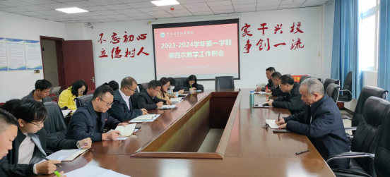2023-2024学年度第一学期第四次教学工作例会于10月24日在综合楼三楼会议室召开,参会人员主要有校党委委员、副校长李建萍、李新发,教务处全体人员,各二级学院负责人及教务科长。本次会议由副校长李建萍主持。
