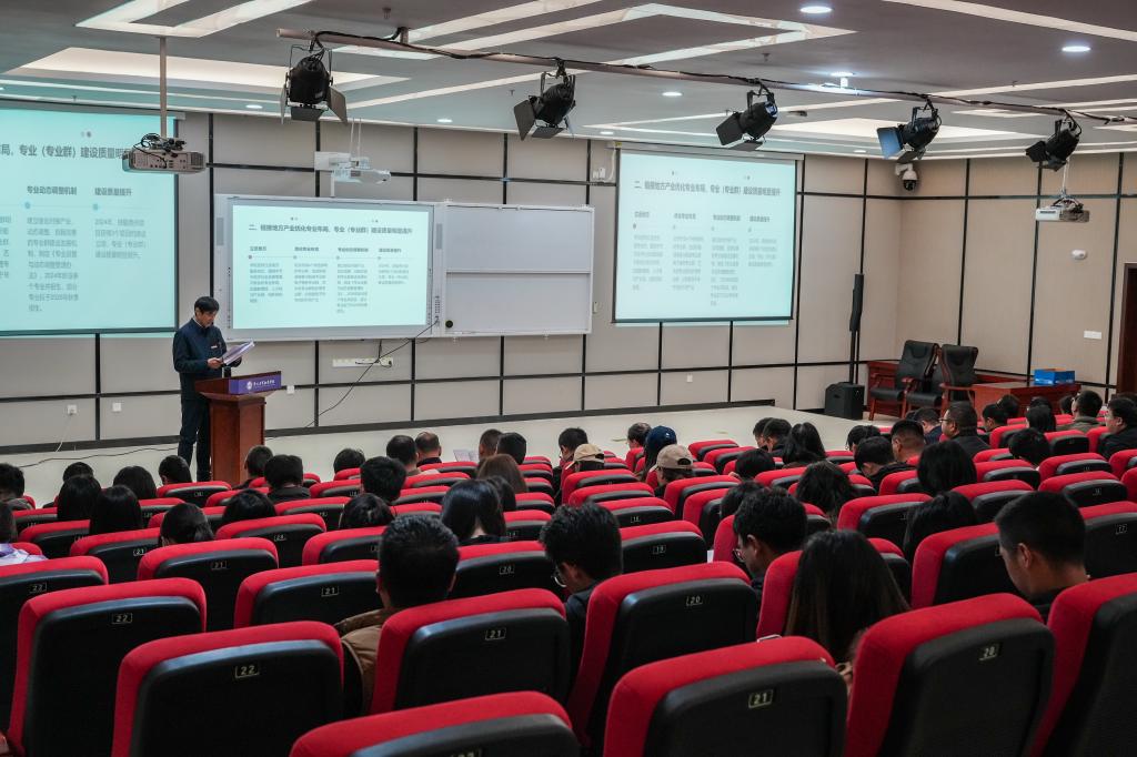 报告指出,过去一年,学校坚持用习近平新时代中国特色社会主义思想凝心铸魂,深入学习贯彻党的二十大和二十届二中、三中全会精神,坚决贯彻落实习近平总书记关于贵州关于毕节工作重要讲话重要指示批示精神,贯彻党的教育方针,落实立德树人根本任务。学校一是以教学管理制度建设为抓手,全面规范教学运行管理流程,推动“理念+工具+制度”管理体系落地见效;二是围绕毕节市经济社会发展需要,不断优化专业布局,逐步建立健全对接产业、动态调整自我完善的专业群建设发展机制;逐步建立健全对接产业、动态调整自我完善的专业群建设发展机制,制定《专业设置与动态调整管理办法》,围绕毕节市产业布局,不断优化专业布局,2024年新设新能源装备技术专业、光伏工程技术专业、绿色食品生产技术专业等三个专业正式招生,新增设跨境电子商务和智能食品加工专业,专业(专业群)建设质量明显提升,技能贵州项目获3个立项建设。三是产教融合校企合作的广度和深度不断加强,为培养德技双修的高素质技术技能人才奠定坚实产教融合平台。由毕节高新技术产业开发区、贵州一道长通新能源有限公司和我校共同牵头、联合毕节市 40 家企业、十几所中高本学校组建毕节新能源市域产教联合体,获得省级市域联合体立项;四是以“双养工程”为载体,不断建立完善“五育并举”育人体系,第一课堂、第二课堂、社会课堂协同育人;国防教育特色彰显。以技能贵州项目为引领,抓住内涵建设的五个关键要素,编制《“五金”强基提质培育计划项目申 报指南》,启动“五金”项目申报,提升专业人才培养能力,培育省级项目,2024 年共立项建设 46 个项目。通过多措并举,学校教学质量明显提升;五是夯实队伍建设,教师教学科研成果丰硕,一方面学校加大硕士研究生引进的力度,专任教师硕士比大幅提升,为教学质量提升提供坚实的人才基础。另一方面,引进具有丰富管理经验的高称“银龄教师”充实到教学管理重要岗位,切实提升教学管理水平,保障了教学规范和内涵建设顺利推进。加强师资培训,夯实教师教学基本功;六是学校始终牢记习近平总书记站在强国建设、民族复兴的历史高度的讲话精神“着力赓续中华文脉、推动中华优秀传统文化创造性转化和创新性发展”,立足于黔西北,将优秀的传统文化发扬光大,并积极支持当地的文化事业。2024年,技能贵州项目实现零的突破、学生各类竞赛数量和质量取得新突破、教师教学竞赛取得新突破。